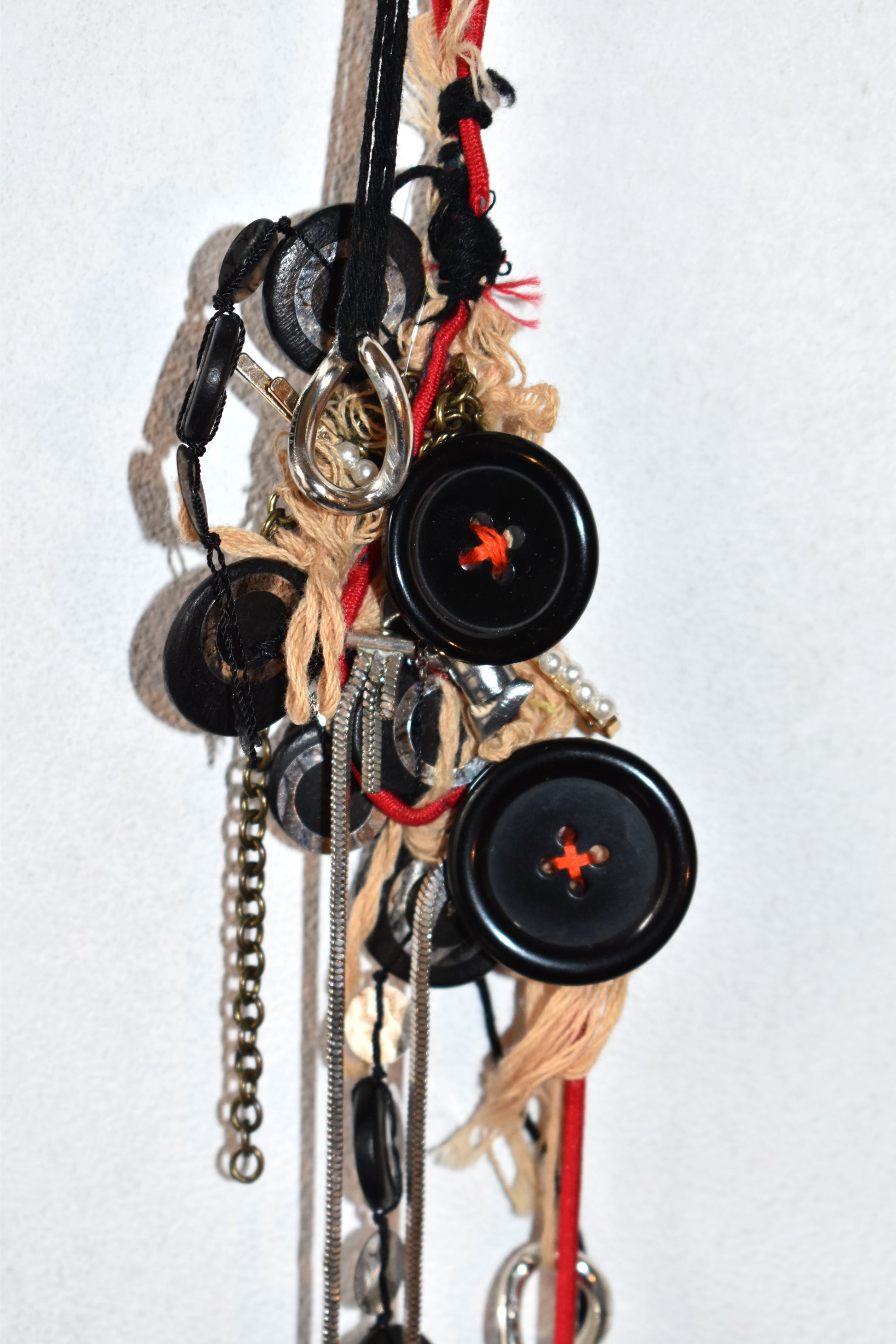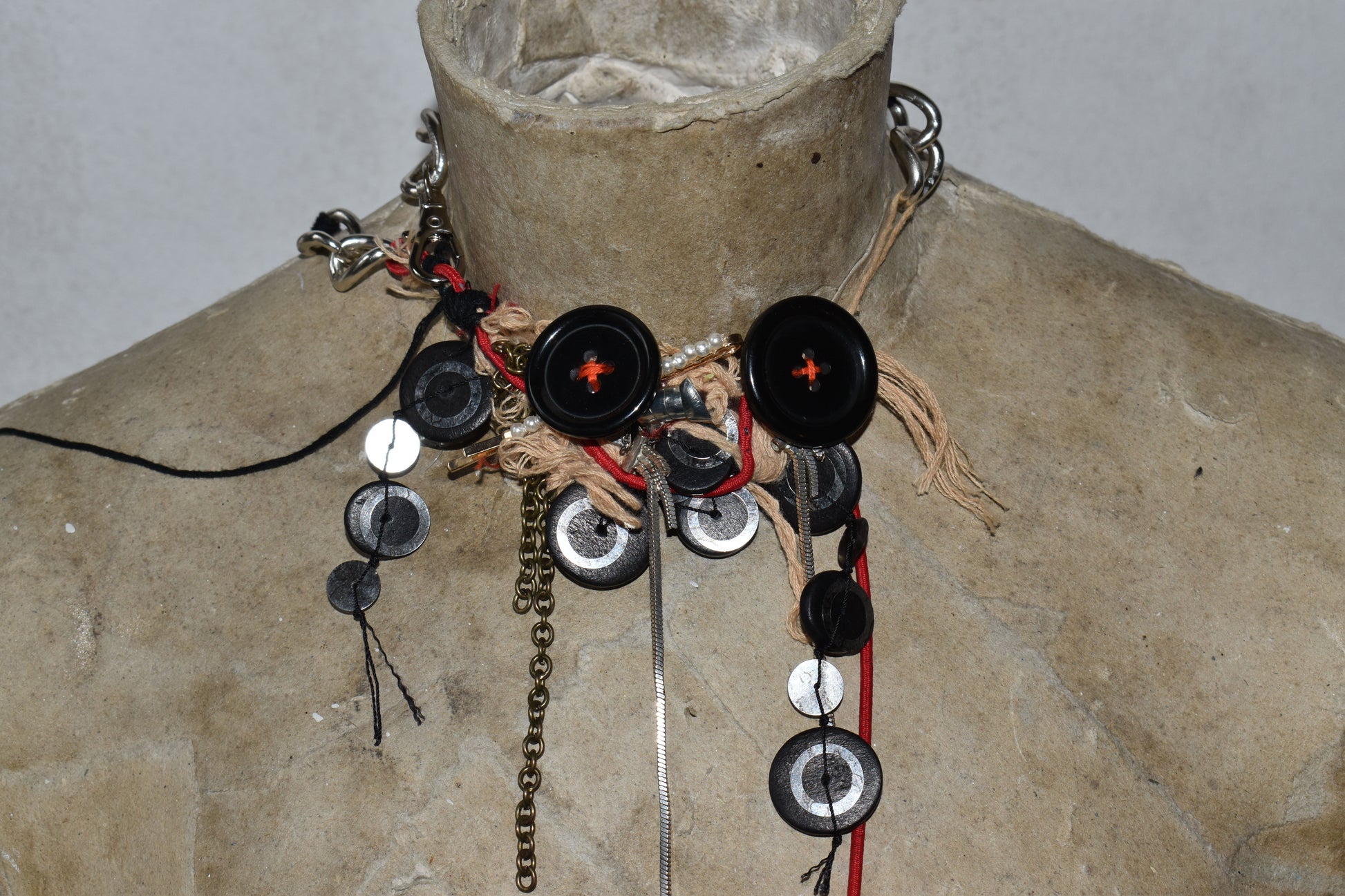 Upcycled jewellery, beads, textiles, embroidery thread, buttons, chains