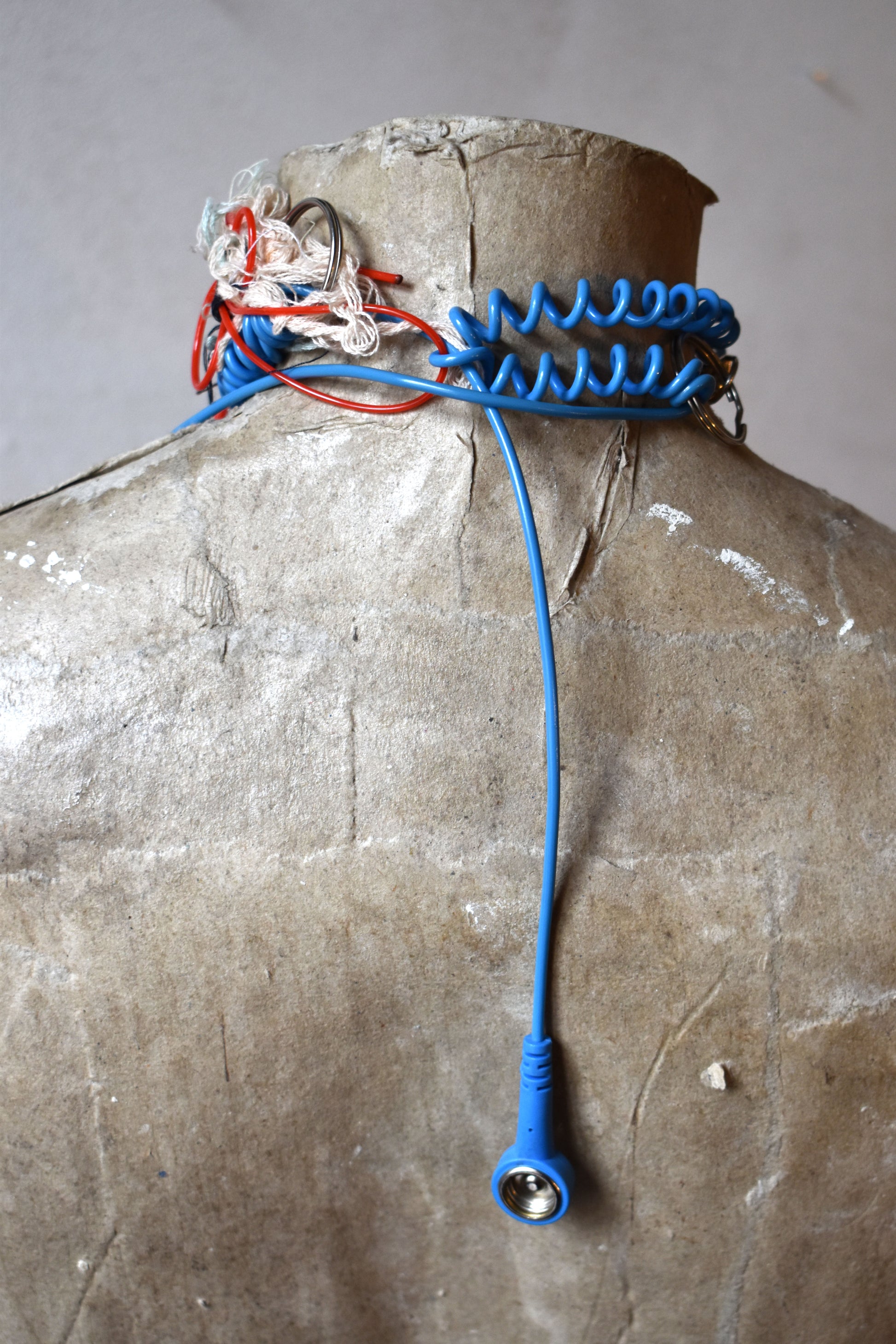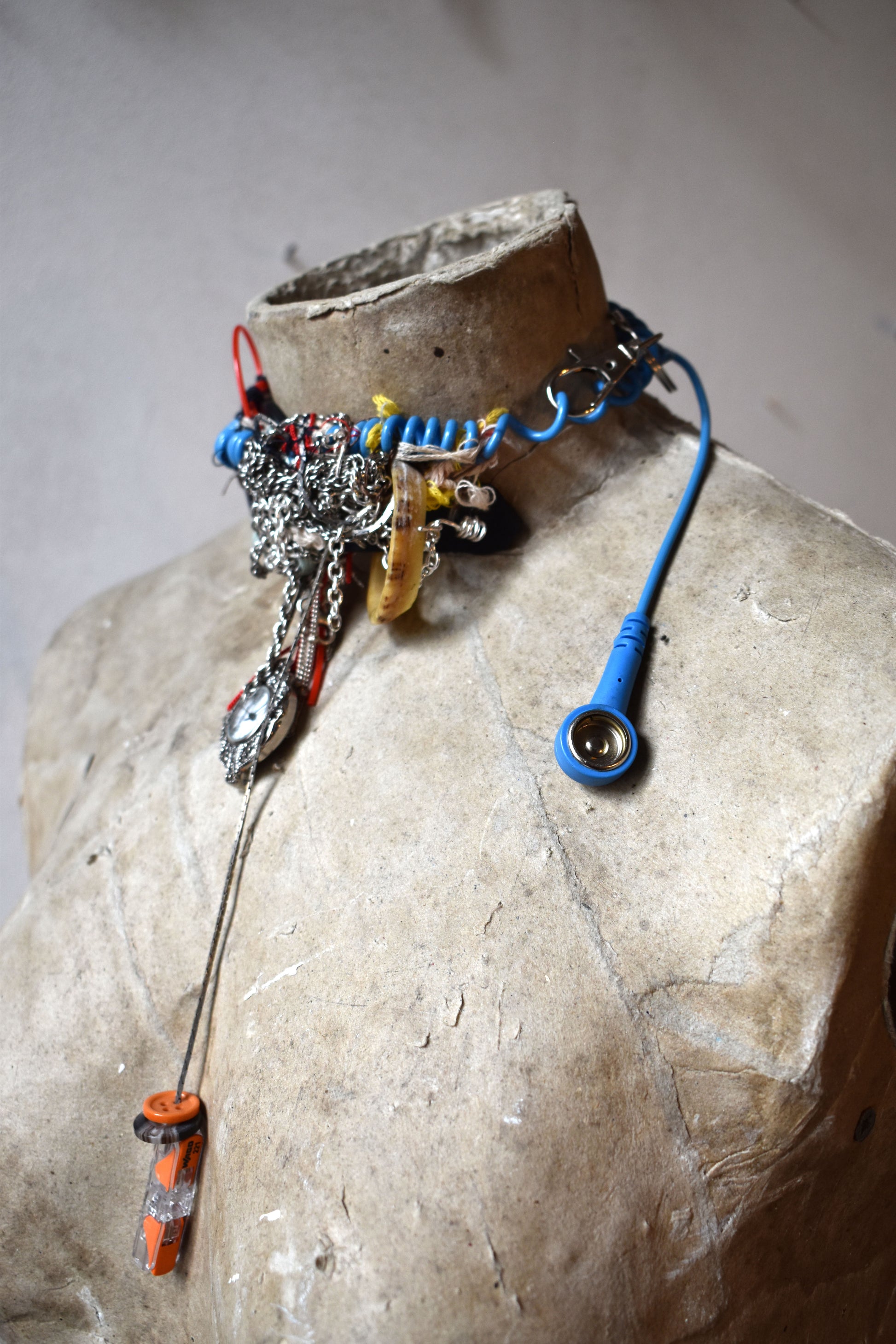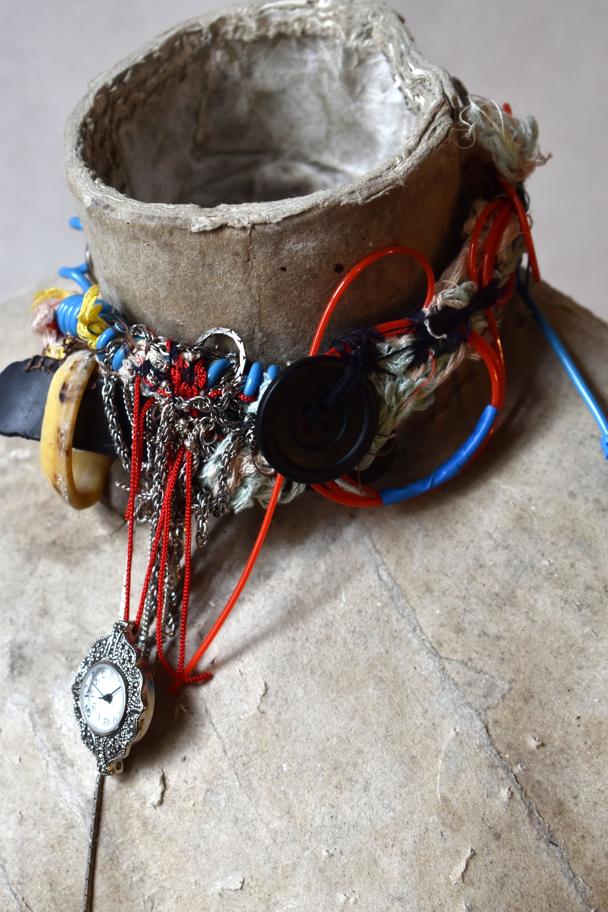 Choker fastens at the back with a clip. Can be styled in more than one way including wearing the inside of the necklace as the outside.