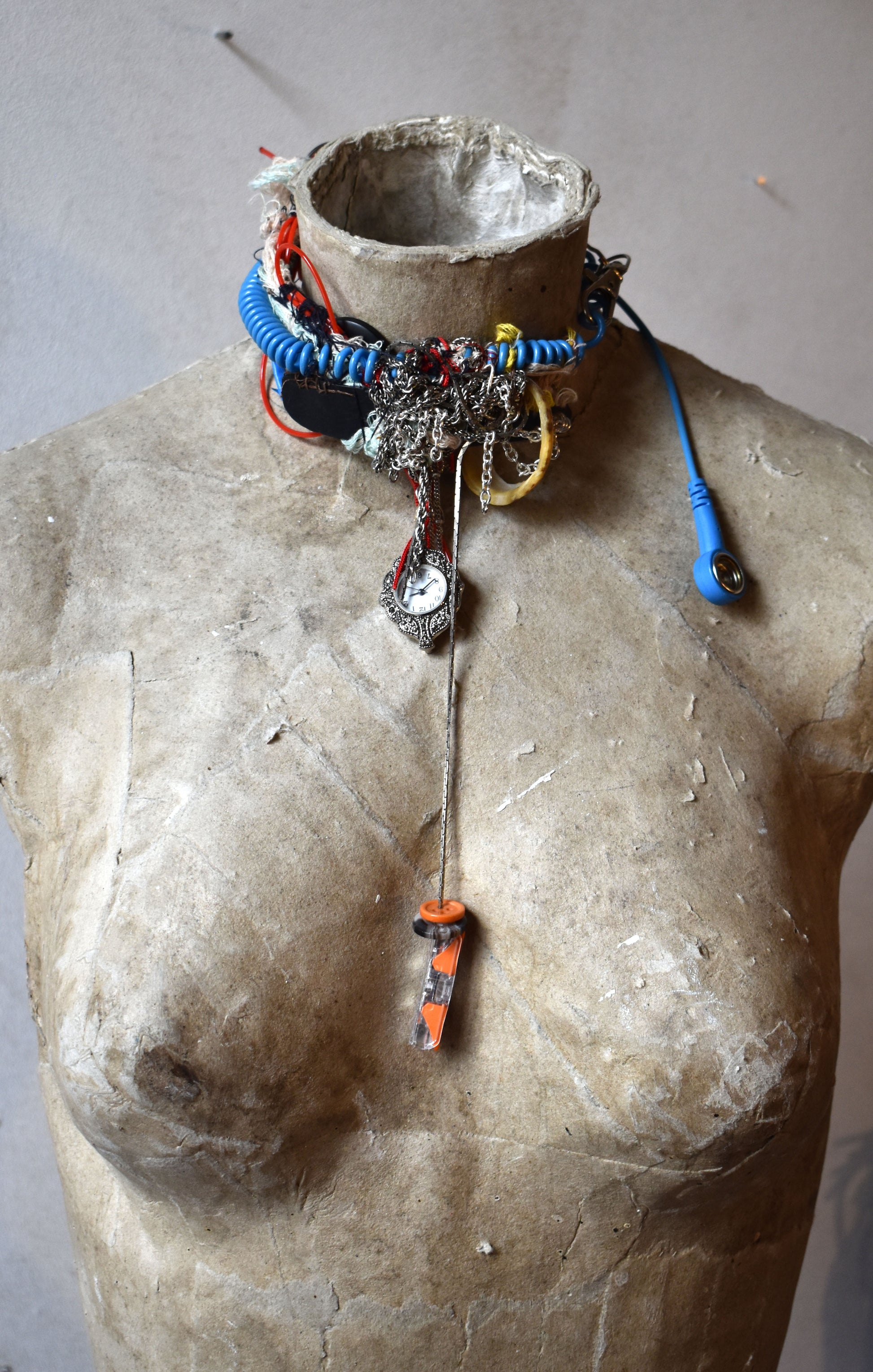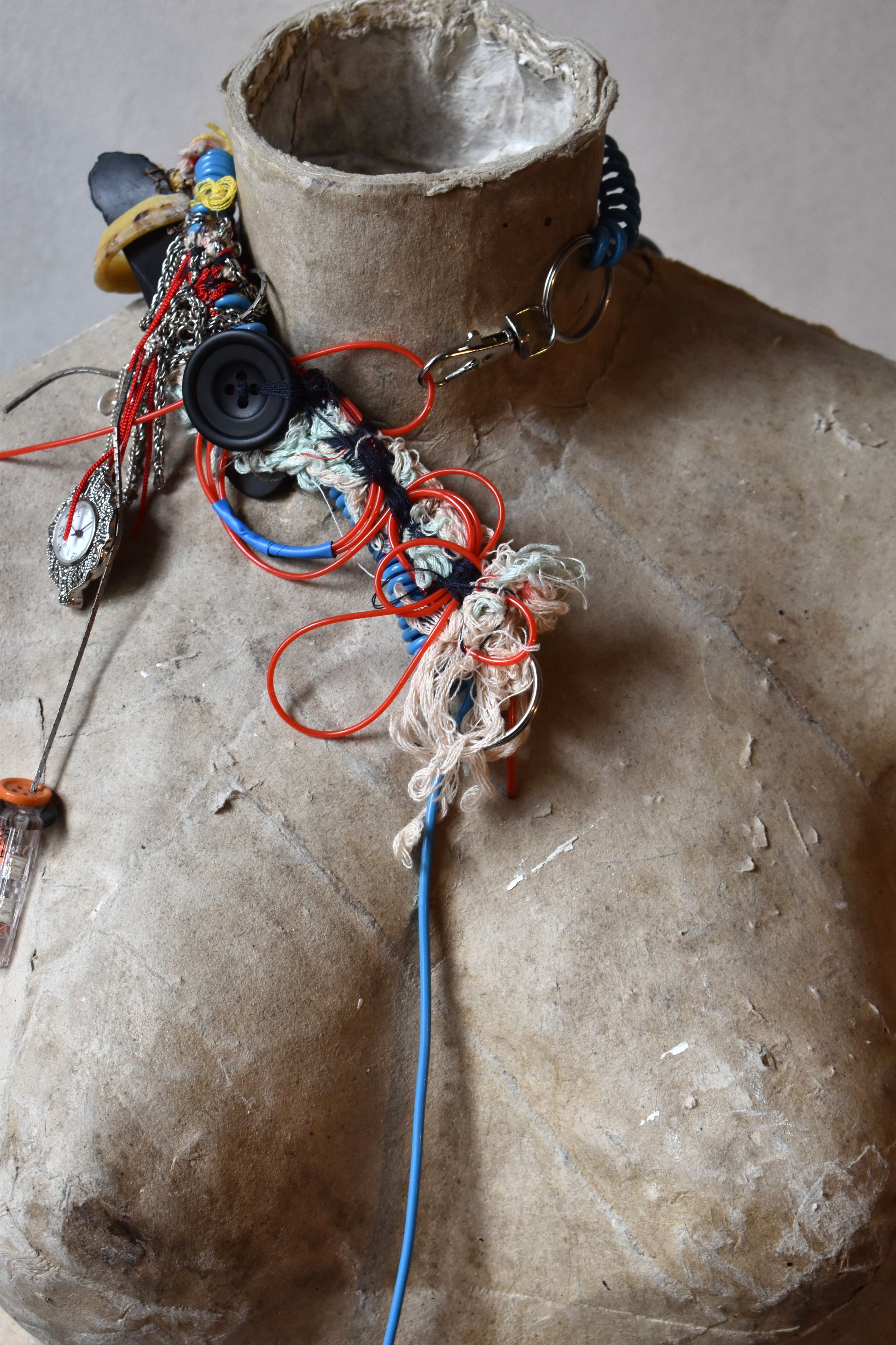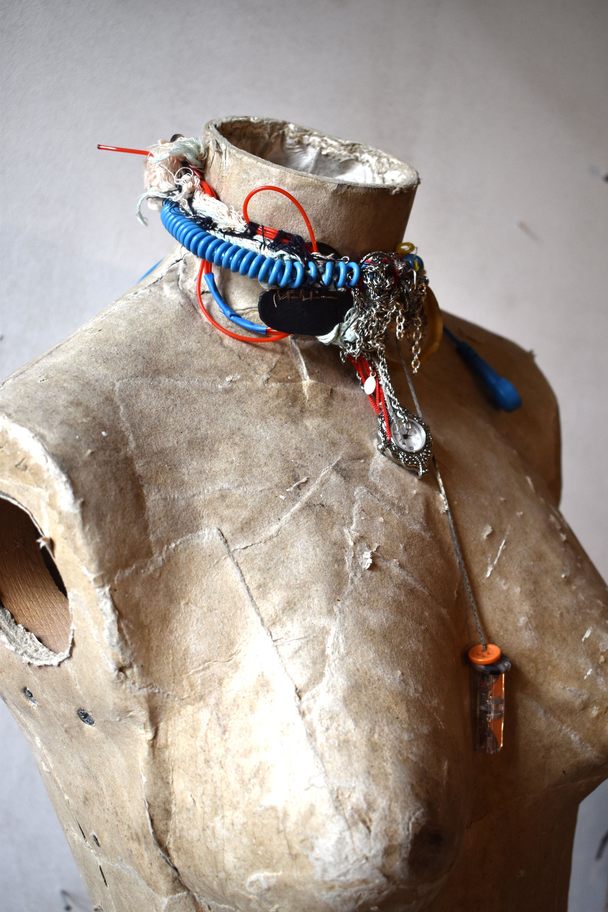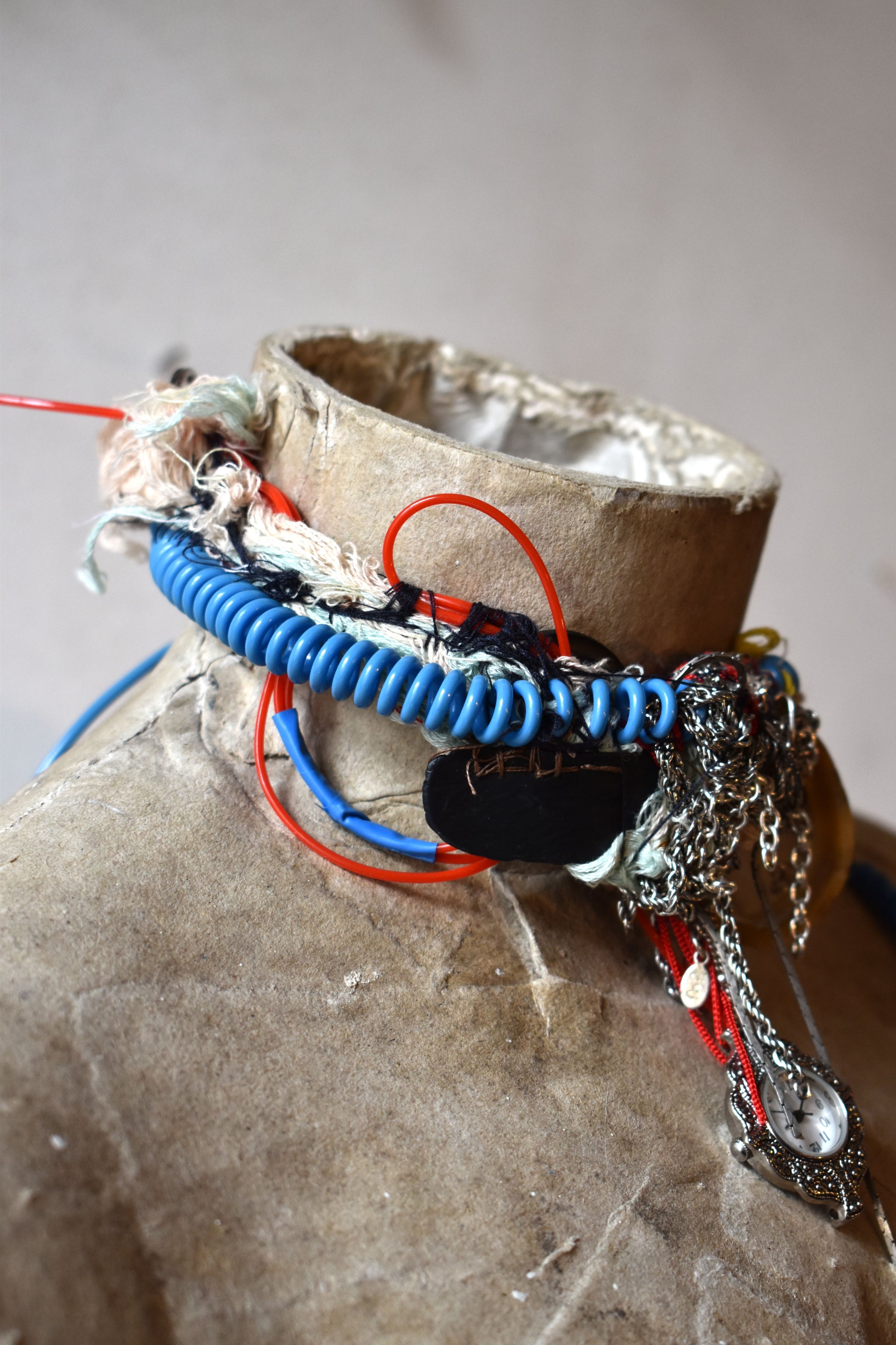 Choker fastens at the back with a clip. Can be styled in more than one way including wearing the inside of the necklace as the outside.