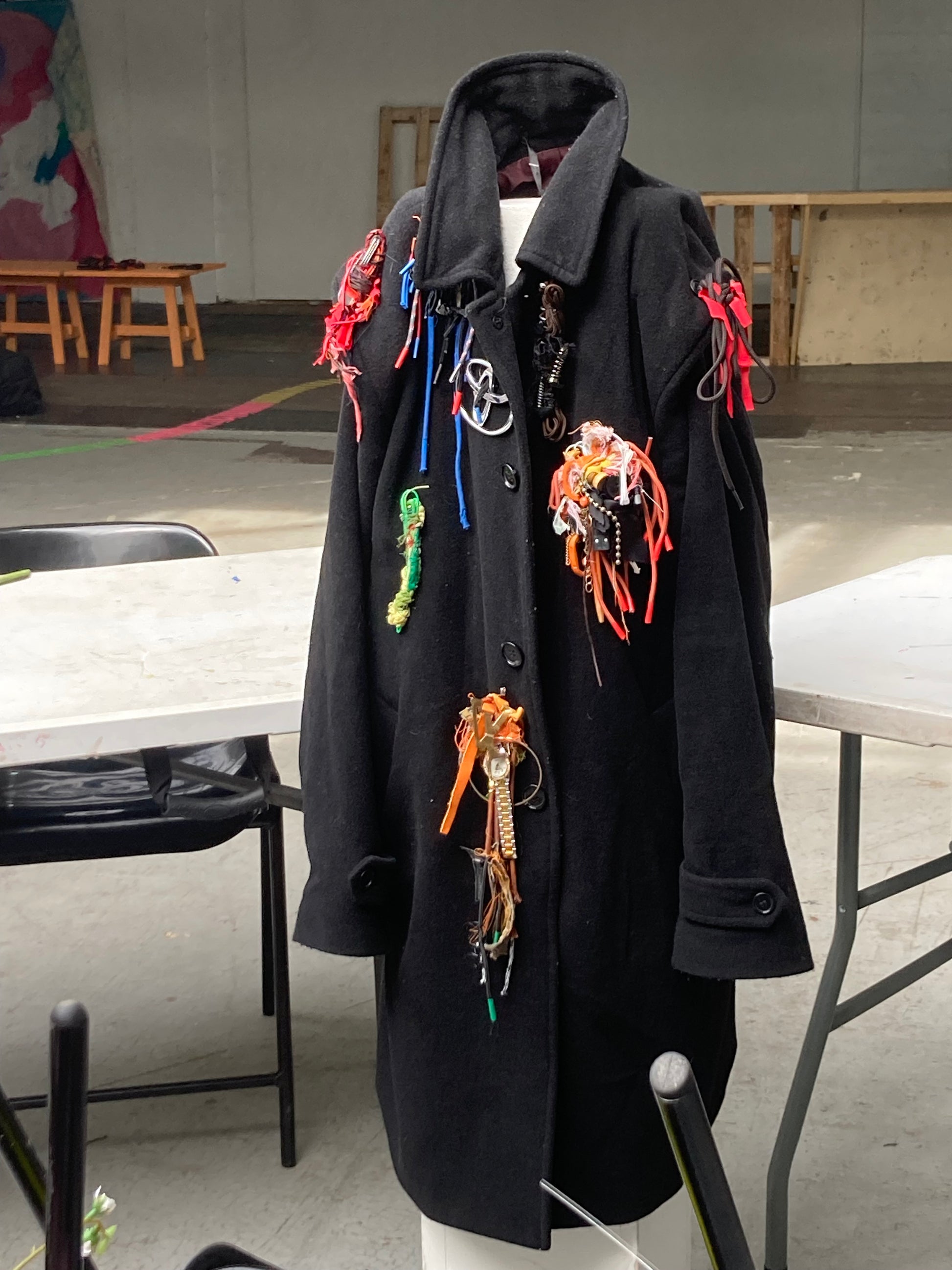 'SPILL references the feeling of stress, overwhelm and uncontrollable emotional detonation…that comes from normalising the replacement of intuition with materials trends certificates and penalty fare charges. It references these distracting elements, alongside a delicacy, validation and elevation that the collation of waste in this way aims to allow for. I wanted to realise stories of personalities, people, humans, events, daily annoyances, rituals, overlooked comments and tasks that are a part of the everyday. Realising these stories through messy works that represents our inner psyches but also the reality of our outer worlds and the impact our actions have (often without realising it); the glasses we snapped the pen that exploded ink the Trek Bar wrapper we just binned. Beyond the polished photo clean coat brushed hair… Behind the Facade (a Trash Club reference). Capturing the moment and the mess…feeling overwhelmed, feeling scared but embracing it and making art anyway. The bulky weight of large keychains that always fall out your hand and the light dust at the bottom of your bag of 5 years. The sculptures themselves realise the duality between weights and textures; soft hard light delicate heavy, mirroring the complexities of psyches and characteristics within an entanglement of Stuff.'