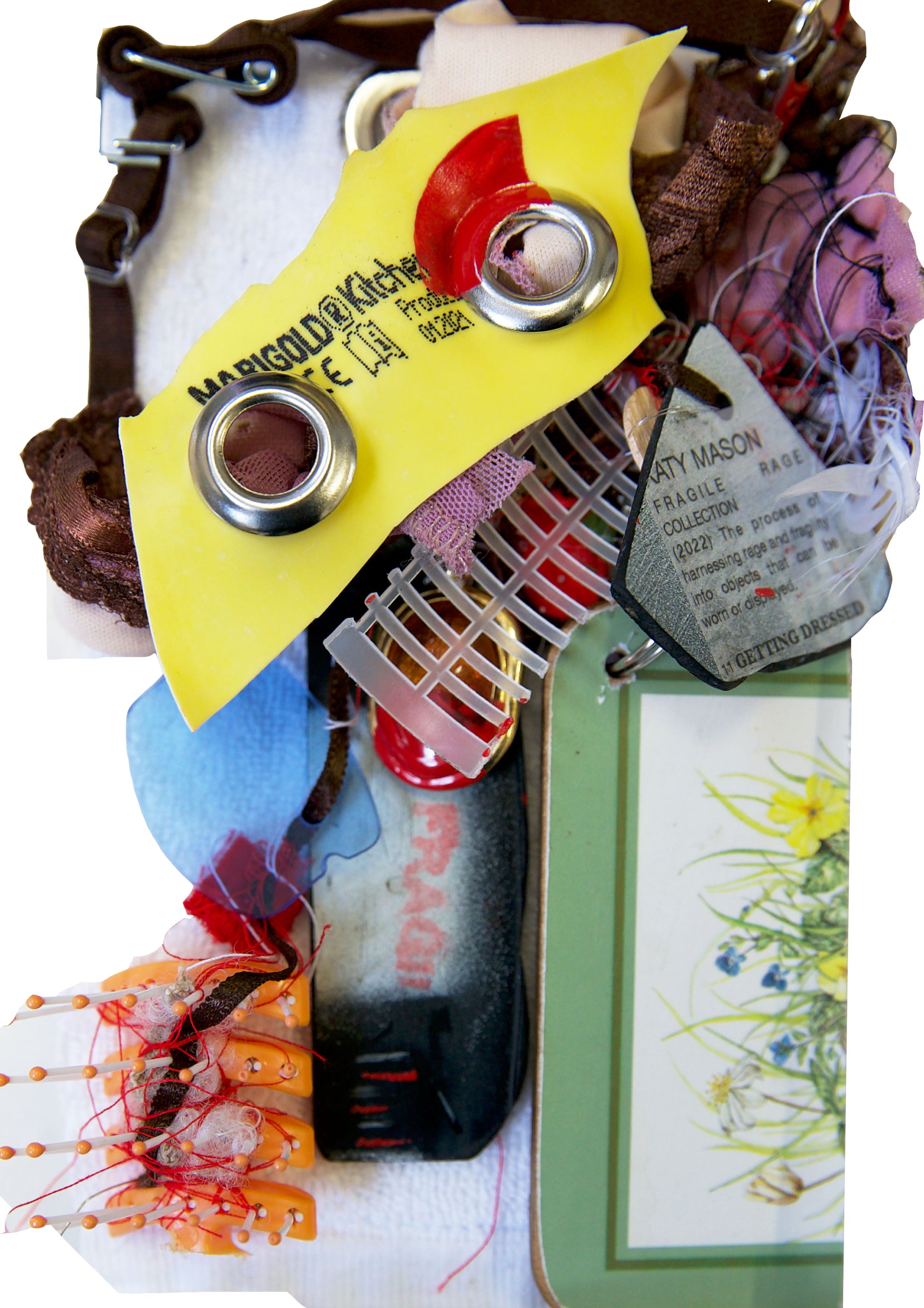 Part of FRAGILE RAGE Collection/2022; Deconstructing, assembling and working into materials and broken, discarded objects in a way that represents humanity and the part of us that is still feral and animalistic.
