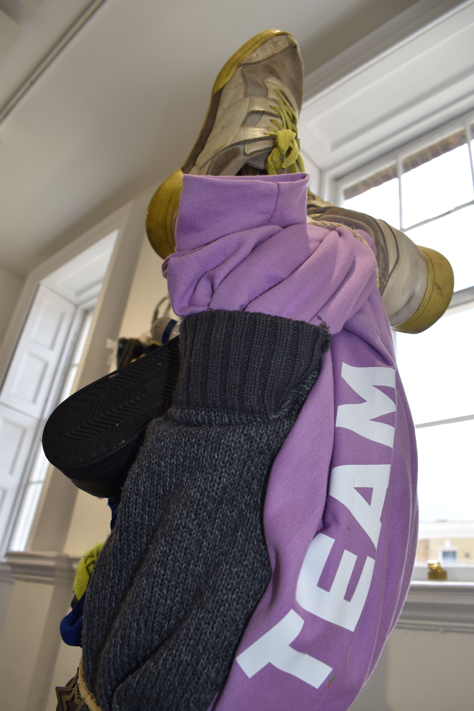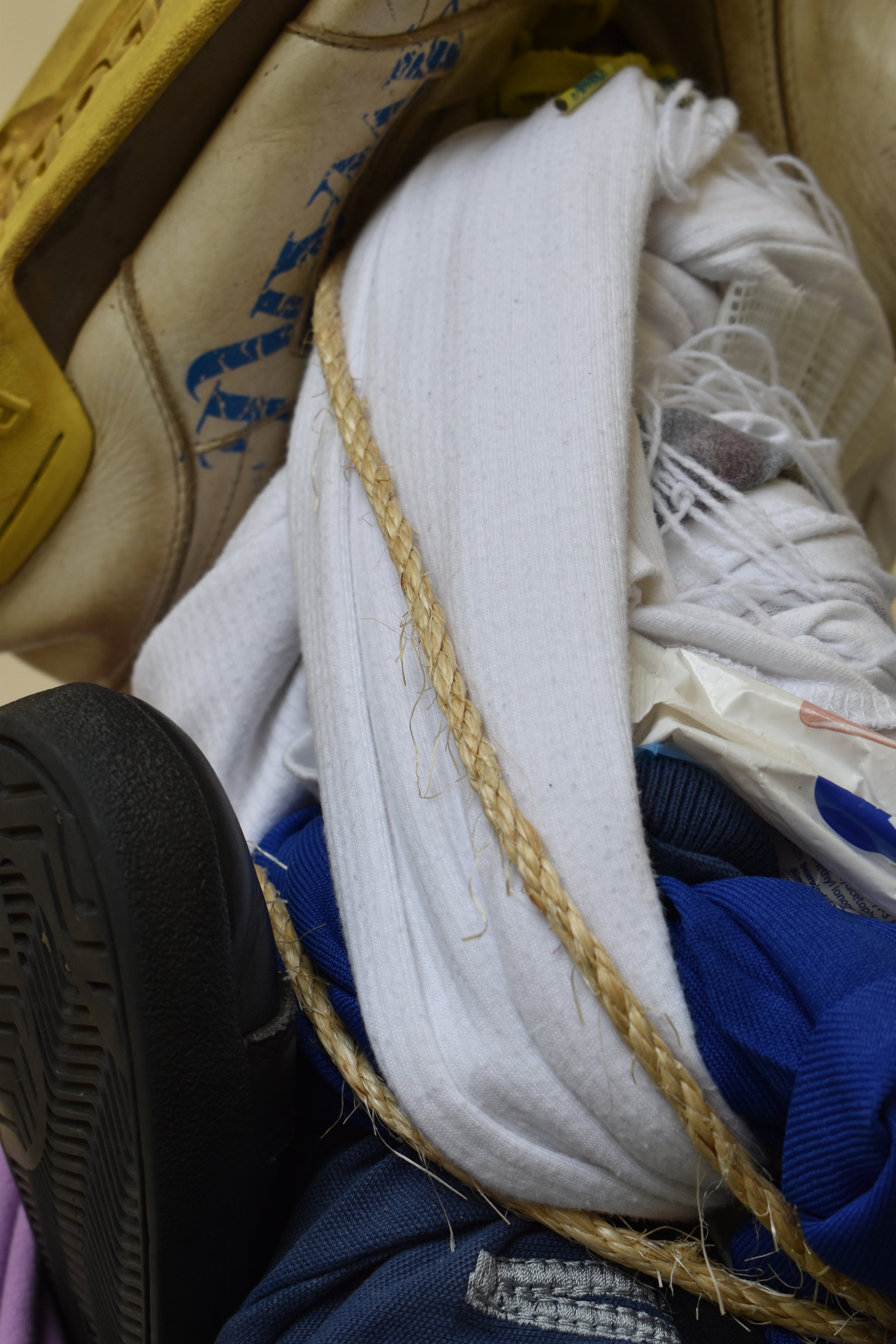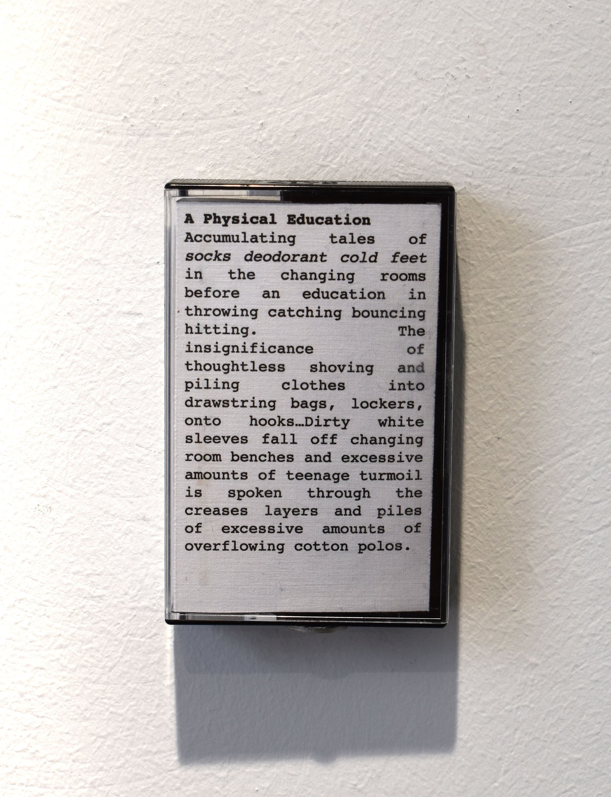 'Accumulating tales of socks deodorant cold feet in the changing rooms before an education in throwing catching bouncing hitting. The insignificance of thoughtless shoving and piling clothes into drawstring bags, lockers, onto hooks…Dirty white sleeves fall off the changing room benches and excessive amounts of teenage turmoil is spoken through the creases and layers and piles of excessive amounts of overflowing cotton polos.'
