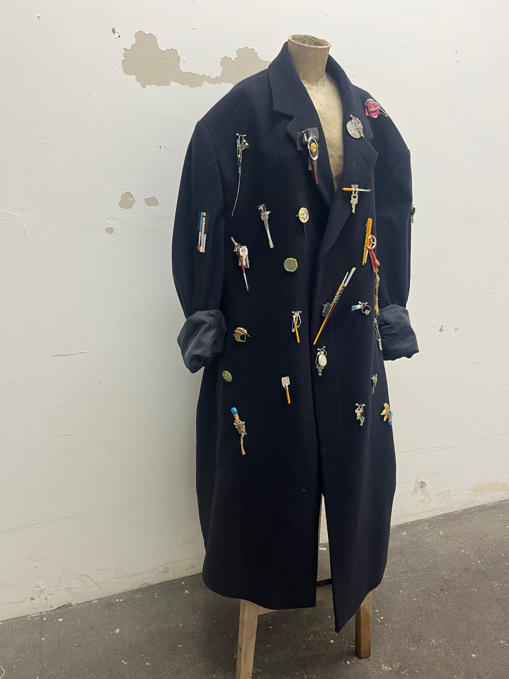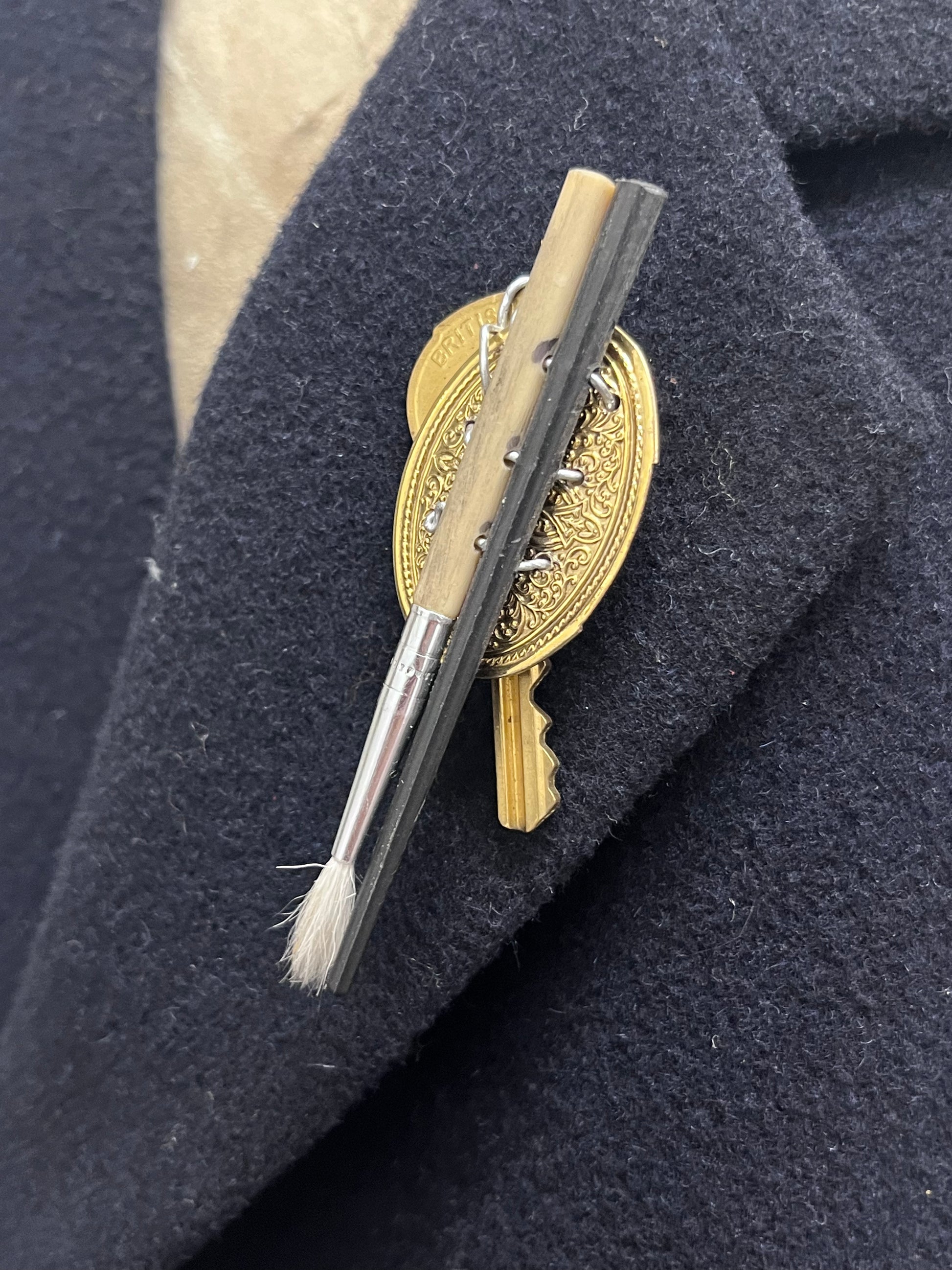 Small sculptural assemblage objects made wearable with brooch pin on the back. Sometimes disassembling objects, otherwise using and appreciating their natural form and discovering the ways in which they can be assembled to each other.