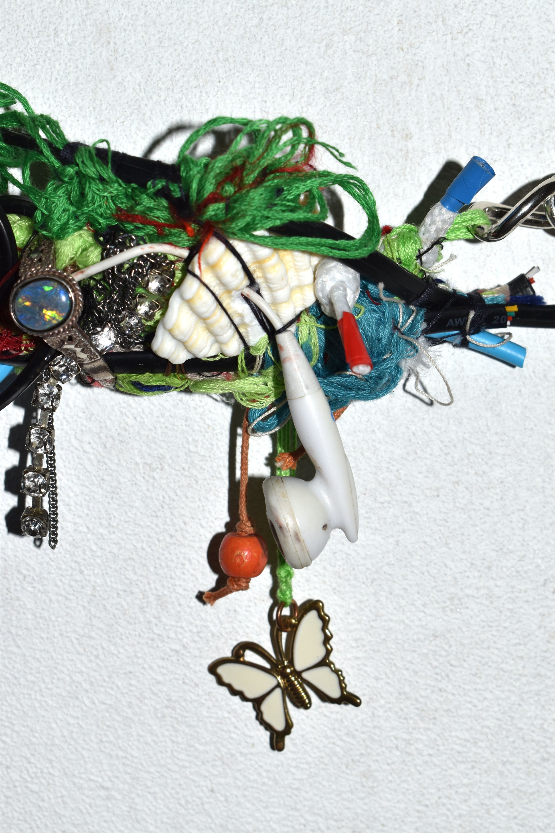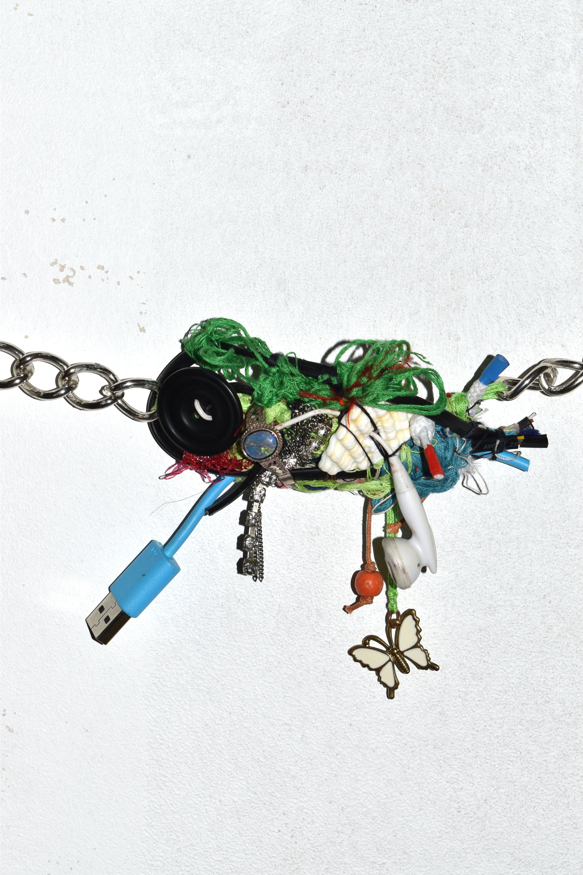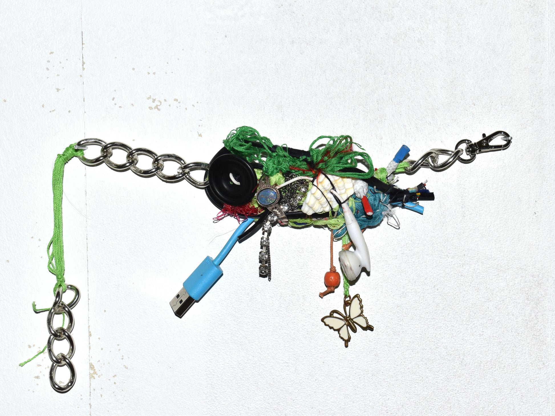 Jewellery, shell, electronic charger, button, embroidery thread, shoe laces, chain links
