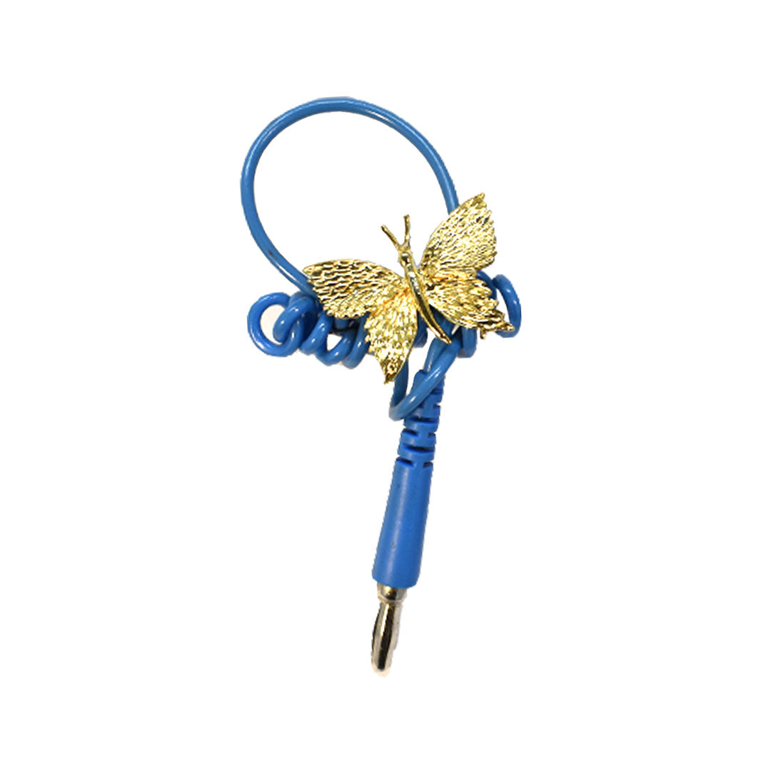 Materials include blue telephone wire, button, shell and metal vintage brooch. All brooches have metal brooch pin attached to the back.