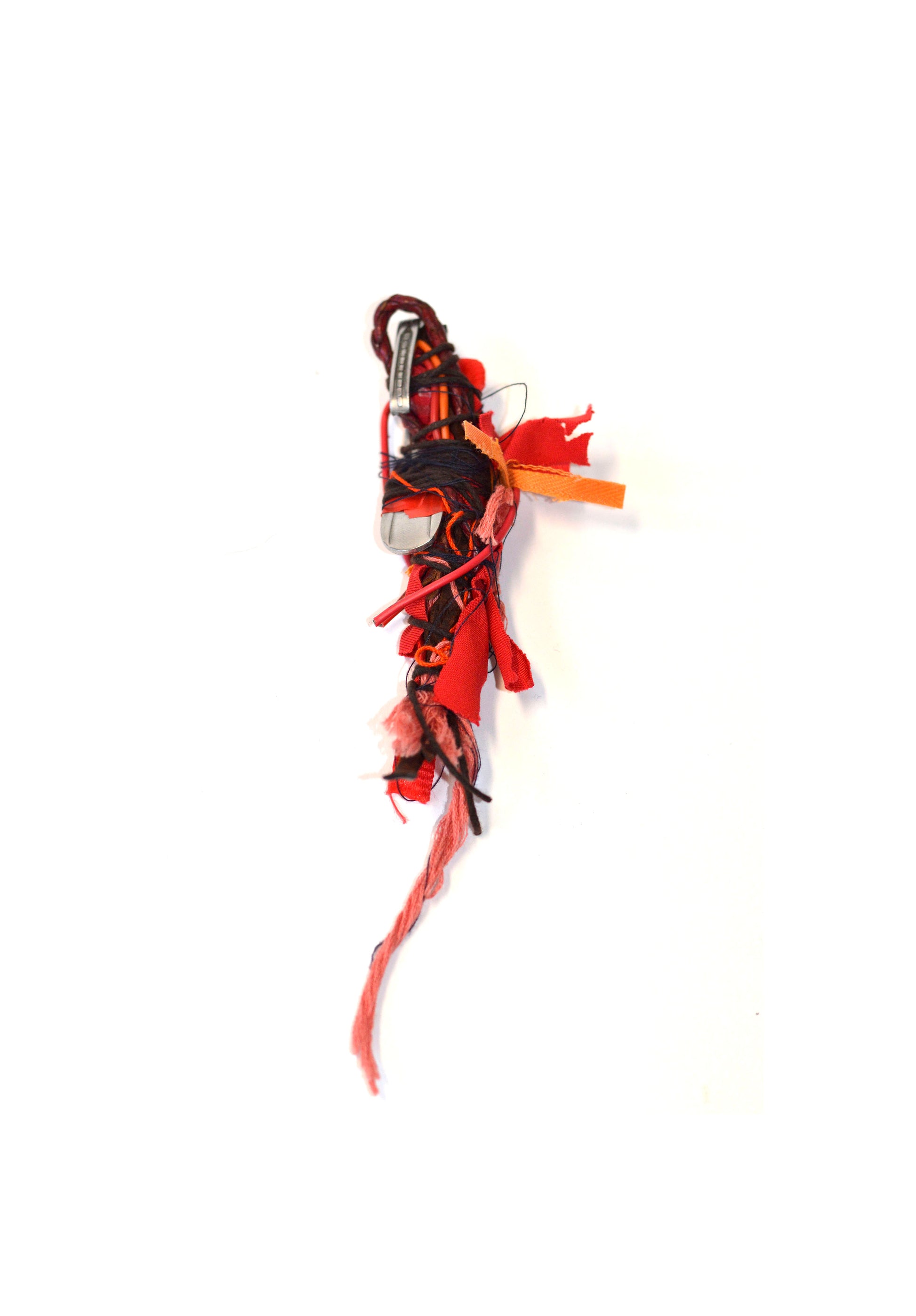 'SPILL references the feeling of stress, overwhelm and uncontrollable emotional detonation…that comes from normalising the replacement of intuition with materials trends certificates and penalty fare charges. It references these distracting elements, alongside a delicacy, validation and elevation that the collation of waste in this way aims to allow for. I wanted to realise stories of personalities, people, humans, events, daily annoyances, rituals, overlooked comments and tasks that are a part of the everyday. Realising these stories through messy works that represents our inner psyches but also the reality of our outer worlds and the impact our actions have (often without realising it); the glasses we snapped the pen that exploded ink the Trek Bar wrapper we just binned. Beyond the polished photo clean coat brushed hair… Behind the Facade (a Trash Club reference). Capturing the moment and the mess…feeling overwhelmed, feeling scared but embracing it and making art anyway. The bulky weight of large keychains that always fall out your hand and the light dust at the bottom of your bag of 5 years. The sculptures themselves realise the duality between weights and textures; soft hard light delicate heavy, mirroring the complexities of psyches and characteristics within an entanglement of Stuff.'